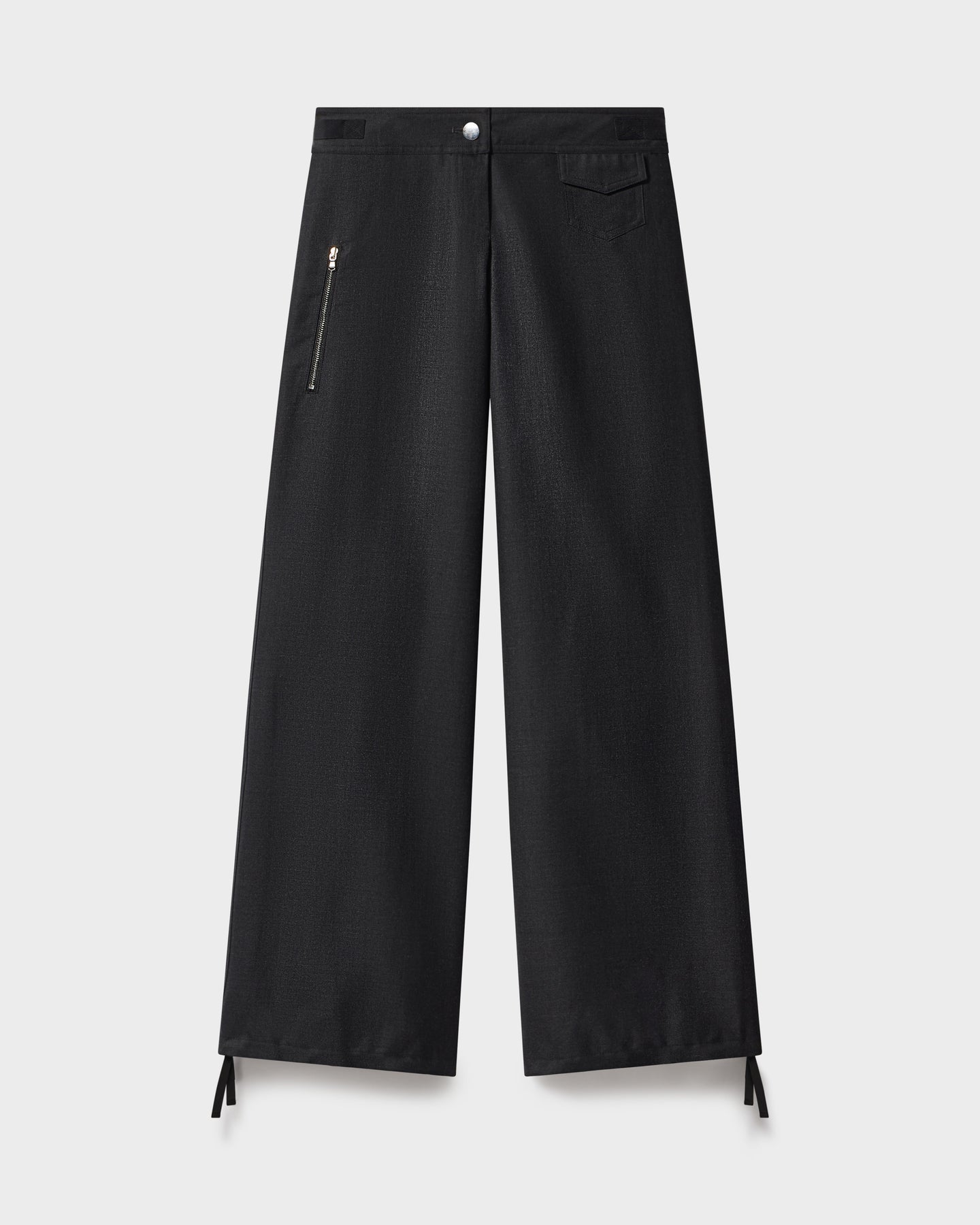 Customizable fit with d-ring cinches at waist and drawstrings at ankles.