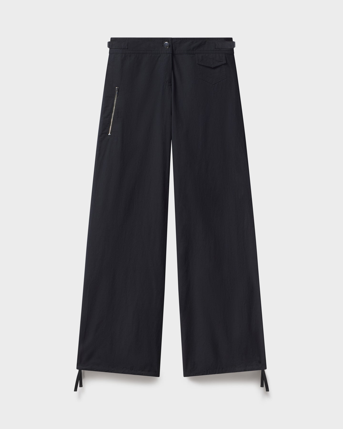 Customizable fit with adjustable D-rings at the waist and drawstrings at the ankles for a sporty cinch or sleek straight leg.