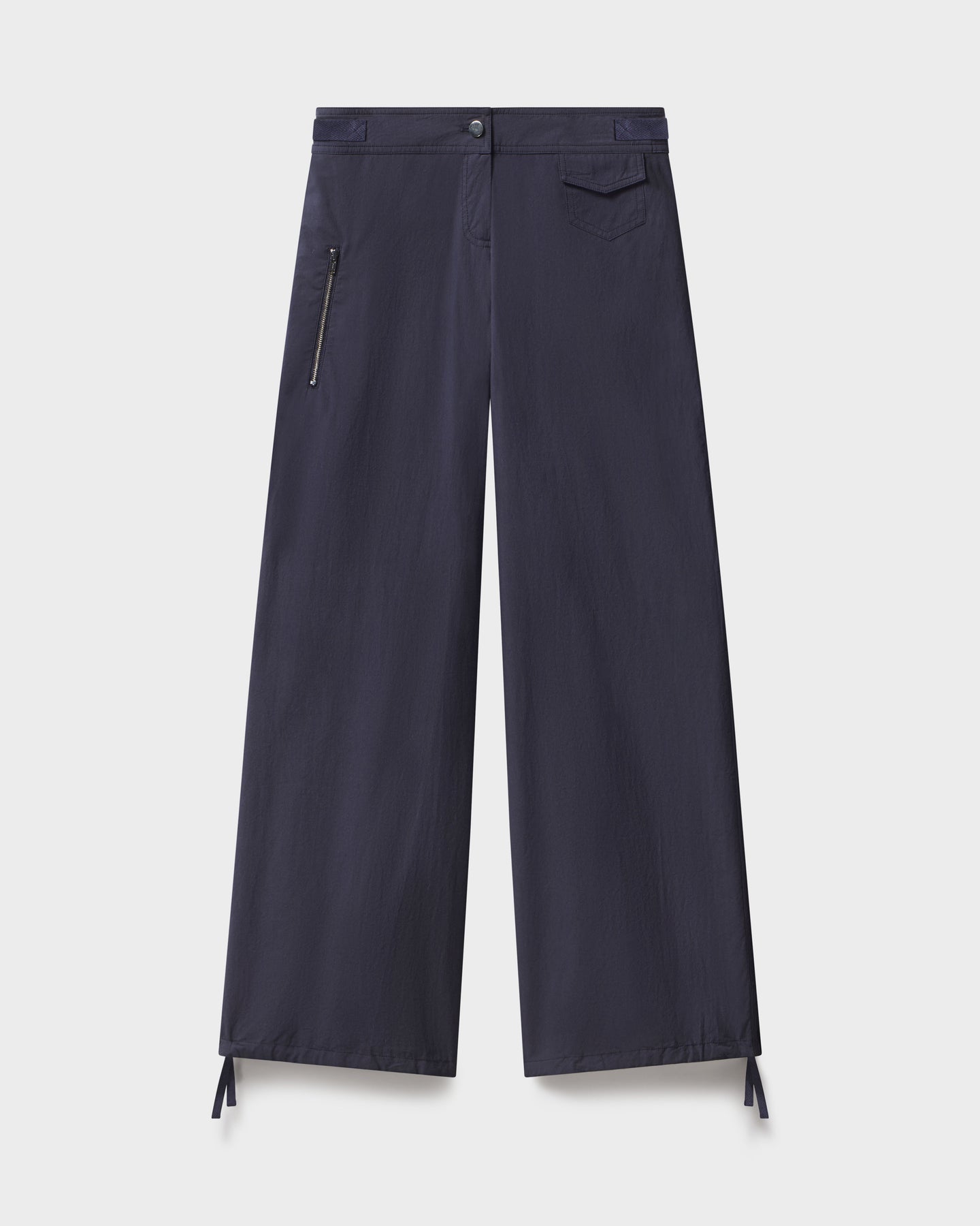 Mid-rise ankle tie pants with a tailored waist/hip and a flattering wide leg.