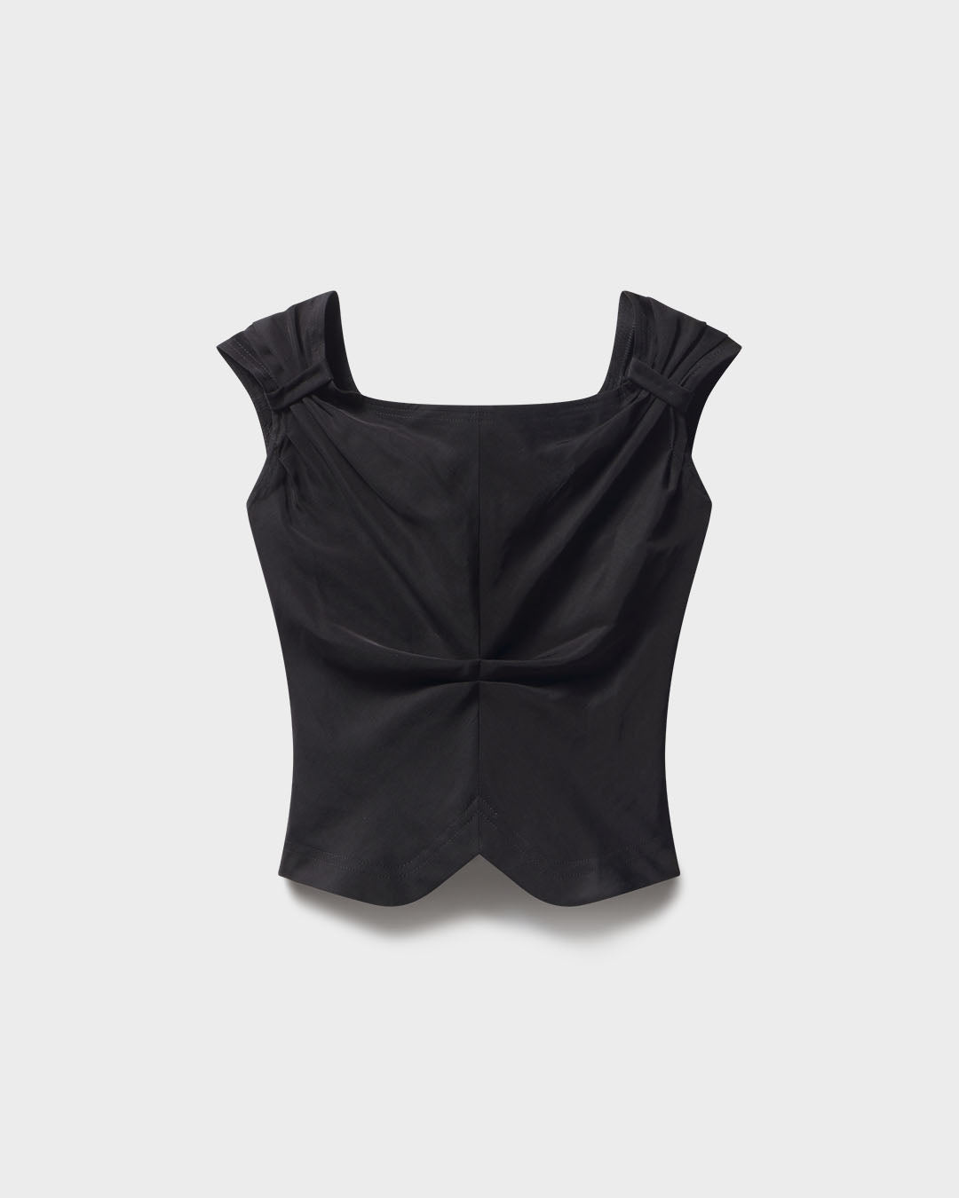 A square-neck corset top with sculptural sleeves and a flattering curved hem.