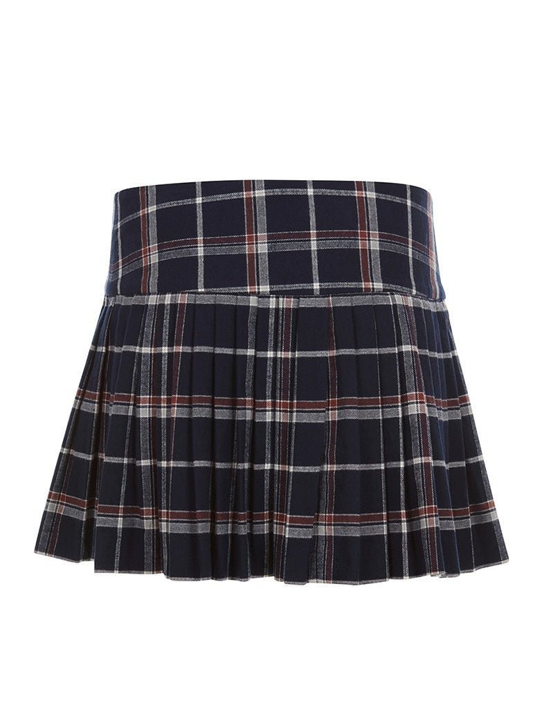Not a Girl, Not Yet a Woman. Plaid flannel skirt with a classic fit and subtle pleating.