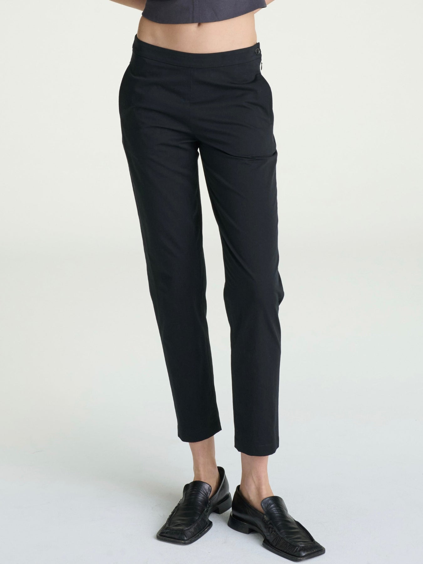 Classic slightly tapered silhouette with a clean, mid-rise waistband.