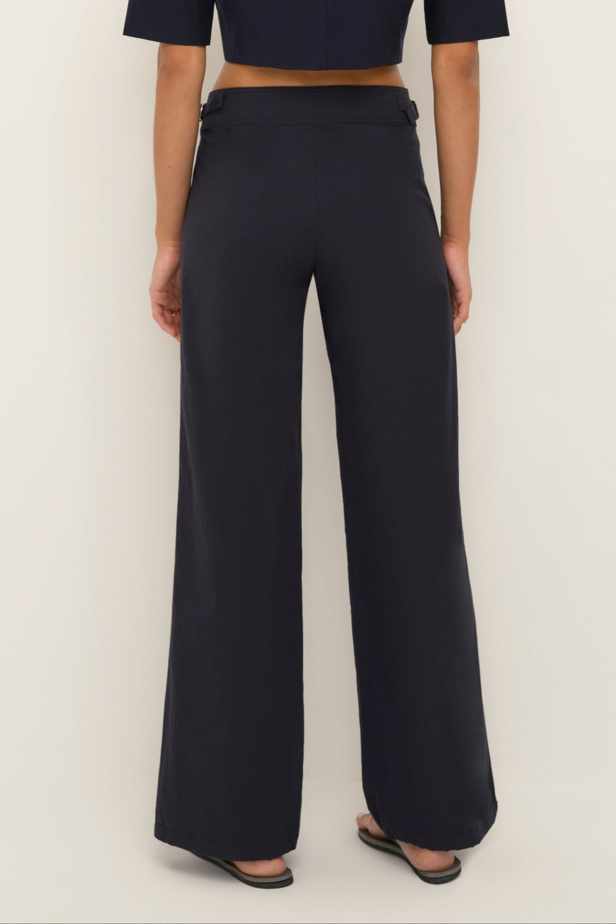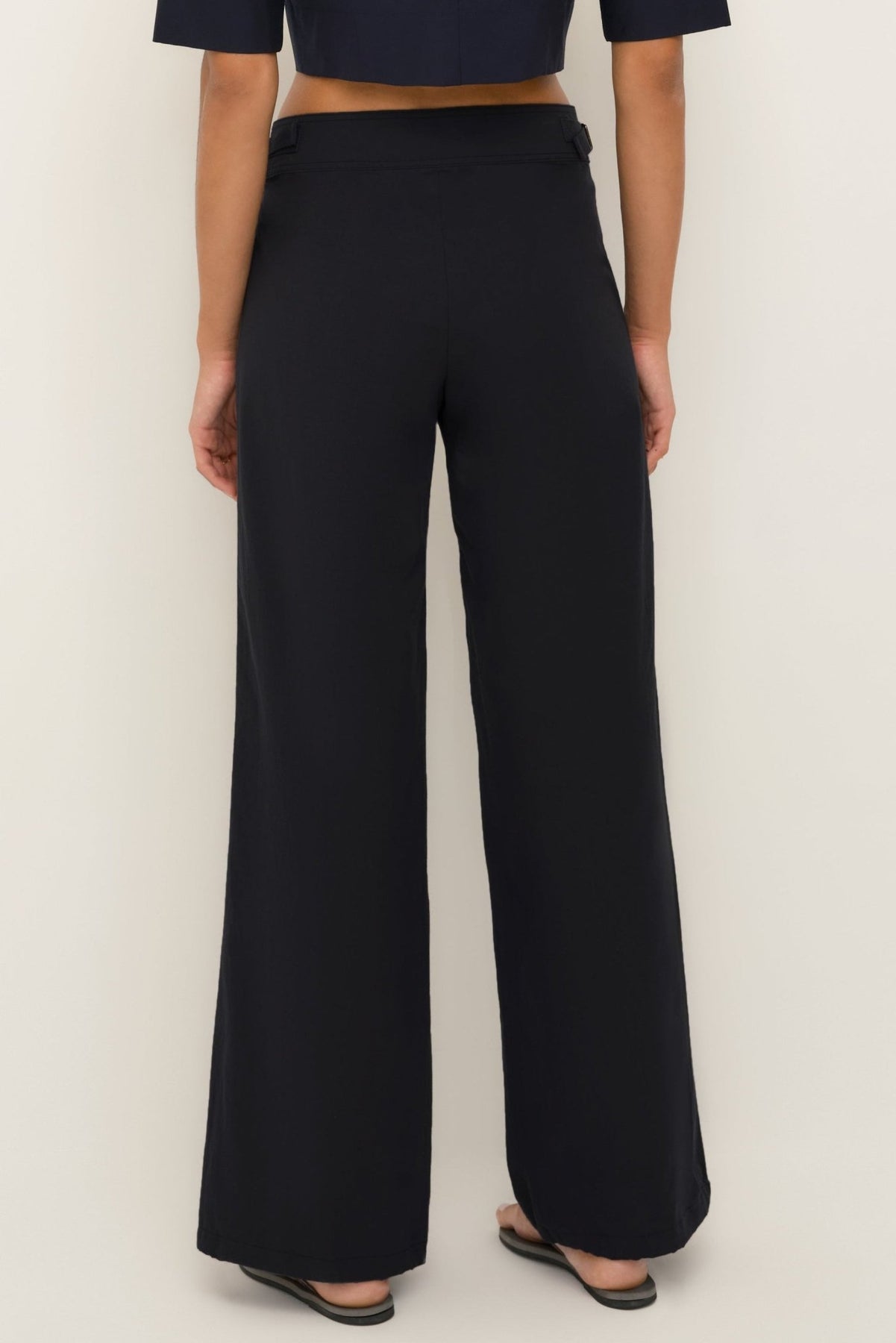 Mid-rise ankle tie pants with a tailored waist/hip and a flattering wide leg.