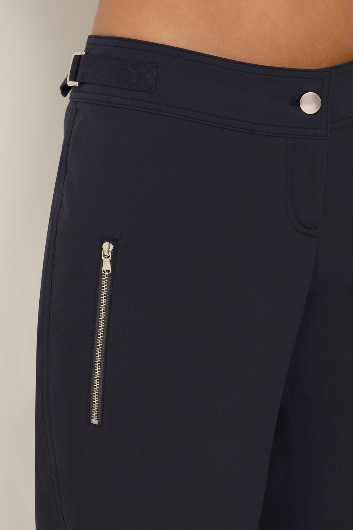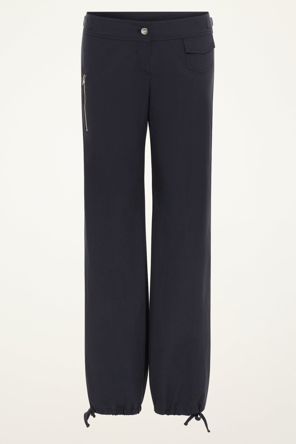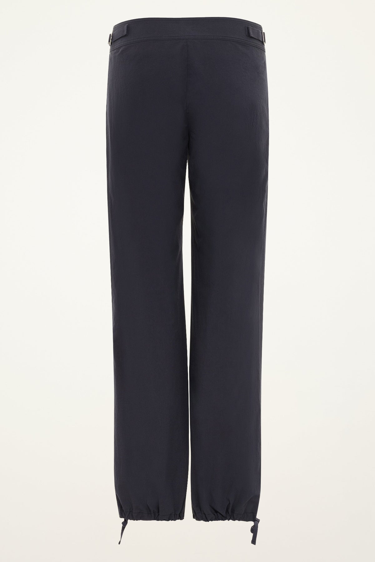 Customizable fit with adjustable D-rings at the waist and drawstrings at the ankles for a sporty cinch or sleek straight leg.